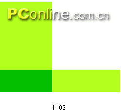 3.按住Shift+Alt,拖移矩形,直到副本的左邊緣與原始矩形的左邊緣對(duì)齊,再將寬度縮小,使三部分緊密連接在一起,填充RGB(4,191,0),這就是我們要作為包裝盒前面的部分。(圖03)