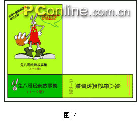 4.下面就要看你的了,為包裝盒添加圖案,文字。(由于本篇不牽涉到構(gòu)圖,所以,這里的例子只是一個(gè)簡單的表示,有不當(dāng)之處大家多海函吧?。▓D04)如果你的圖中有文字部分,記得要為文字創(chuàng)建輪廓,否則導(dǎo)到別的軟件里時(shí)會(huì)慘不忍睹。將你的設(shè)計(jì)圖按塊分別與我們剛創(chuàng)建的三個(gè)矩形組合。