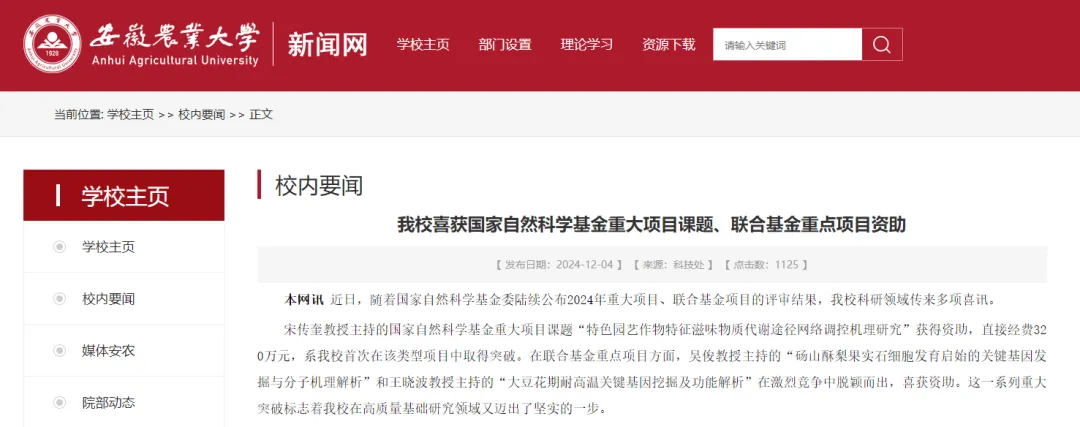 宋傳奎教授主持的國(guó)家自然科學(xué)基金重大項(xiàng)目課題“特色園藝作物特征滋味物質(zhì)代謝途徑網(wǎng)絡(luò)調(diào)控機(jī)理研究”獲得資助,直接經(jīng)費(fèi)320萬(wàn)元,系安徽農(nóng)業(yè)大學(xué)首次在該類型項(xiàng)目中取得突破。在聯(lián)合基金重點(diǎn)項(xiàng)目方面,吳俊教授主持的“碭山酥梨果實(shí)石細(xì)胞發(fā)育啟始的關(guān)鍵基因發(fā)掘與分子機(jī)理解析”和王曉波教授主持的“大豆花期耐高溫關(guān)鍵基因挖掘及功能解析”在激烈競(jìng)爭(zhēng)中脫穎而出,喜獲資助。這一系列重大突破標(biāo)志著學(xué)校在高質(zhì)量基礎(chǔ)研究領(lǐng)域又邁出了堅(jiān)實(shí)的一步……>>查看詳情