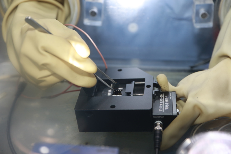 圖4 團(tuán)隊(duì)成員在測(cè)試鈣鈦礦太陽(yáng)能電池光電性能