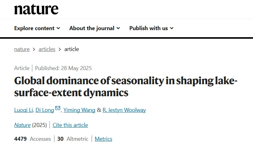 近日,清華大學水利水電工程系龍笛教授團隊在全球地表水體遙感監(jiān)測研究中取得重要進展,揭示全球百萬湖泊水域面積的多尺度動態(tài)與季節(jié)性主導機制,在世界范圍內(nèi)打破了長期困擾遙感水文界的“時間?空間”權(quán)衡瓶頸,推動全球湖泊遙感監(jiān)測從“靜態(tài)觀測”邁入“高精度動態(tài)解析”。相關(guān)研究成果以《季節(jié)性主導全球湖泊水域面積動態(tài)》(Global dominance of seasonality in shaping lake-surface-extent dynamics)為題在線發(fā)表于《自然》(Nature)。