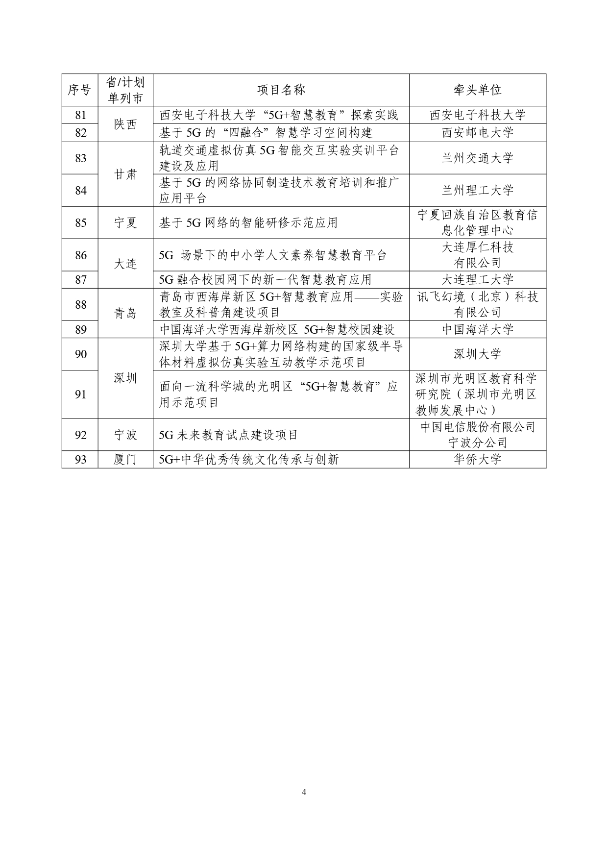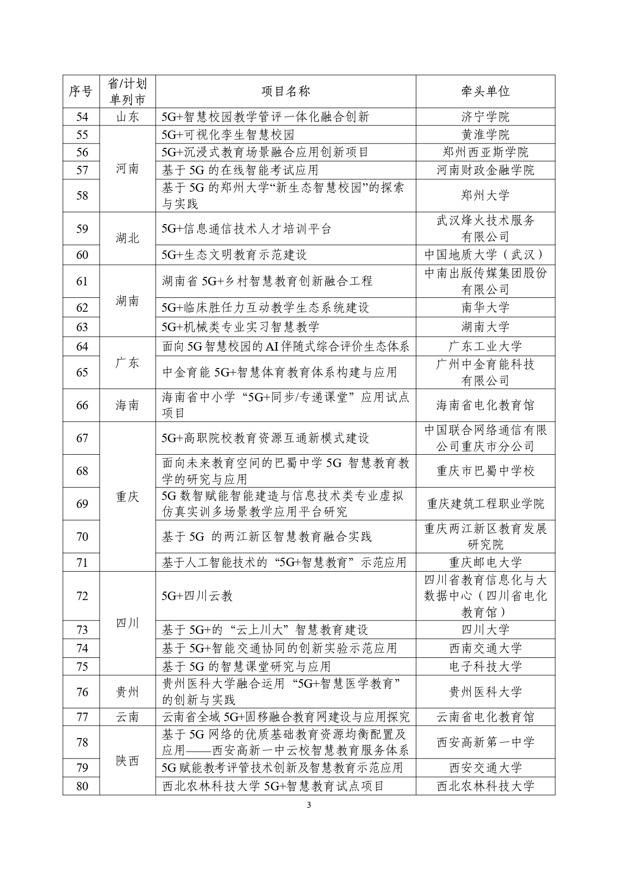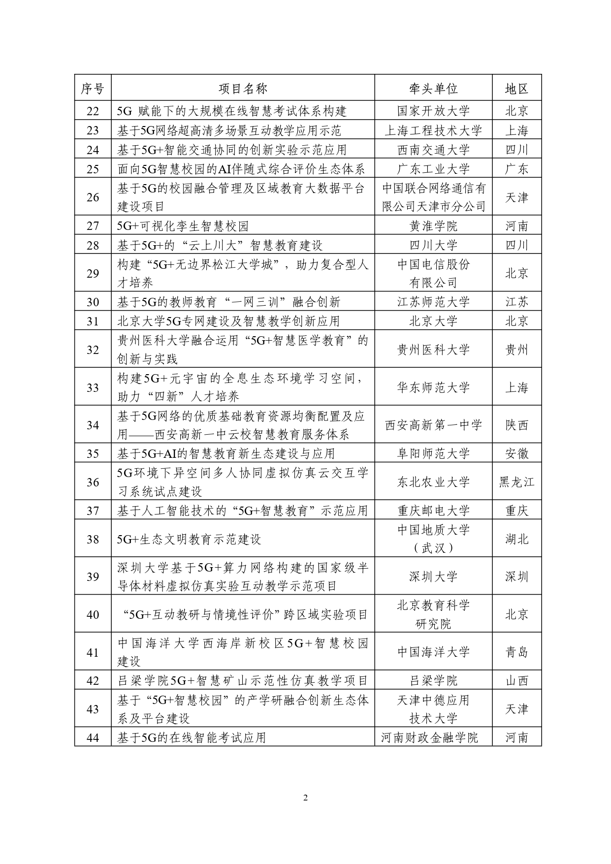 “5G+智慧教育”應用試點全國典型項目和通過驗收項目名單公示