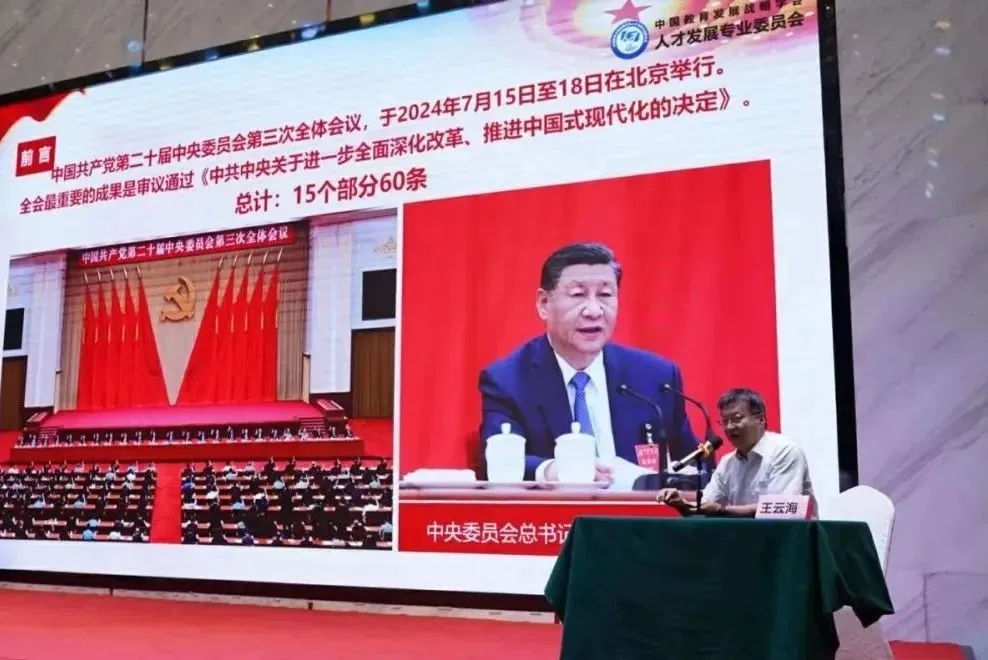 本次研修班首先由王云海副主任帶領(lǐng)全體學(xué)員學(xué)習(xí)黨的二十屆三中全會(huì)精神。王云海副主任指出,《中共中央關(guān)于進(jìn)一步全面深化改革、推進(jìn)中國(guó)式現(xiàn)代化的決定》提出了教育、科技、人才是中國(guó)式現(xiàn)代化的基礎(chǔ)性、戰(zhàn)略性支撐,必須深入實(shí)施科教興國(guó)戰(zhàn)略、人才強(qiáng)國(guó)戰(zhàn)略、創(chuàng)新驅(qū)動(dòng)發(fā)展戰(zhàn)略,統(tǒng)籌推進(jìn)教育科技人才體制機(jī)制一體改革等重要論斷,這些論斷為新時(shí)期高校人才高質(zhì)量發(fā)展指明了方向。王云海副主任表示,人才發(fā)展專委會(huì)組織本次研修班,是落實(shí)二十屆三中全會(huì)精神的具體舉措,旨在通過學(xué)習(xí)黨和國(guó)家的最新政策,分享代表性高校的創(chuàng)新舉措,凝聚各高校人事人才工作的共識(shí),促進(jìn)院校間的互學(xué)互鑒,共同推進(jìn)教師隊(duì)伍的高質(zhì)量發(fā)展。
