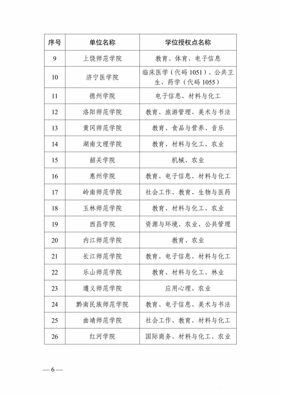 2023年度審核增列的博士、碩士學(xué)位授予單位及其新增學(xué)位授權(quán)點(diǎn)名單如下: