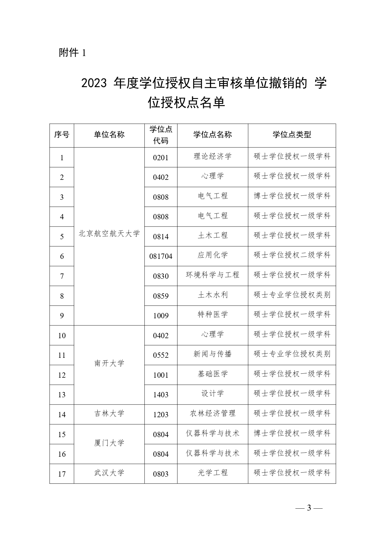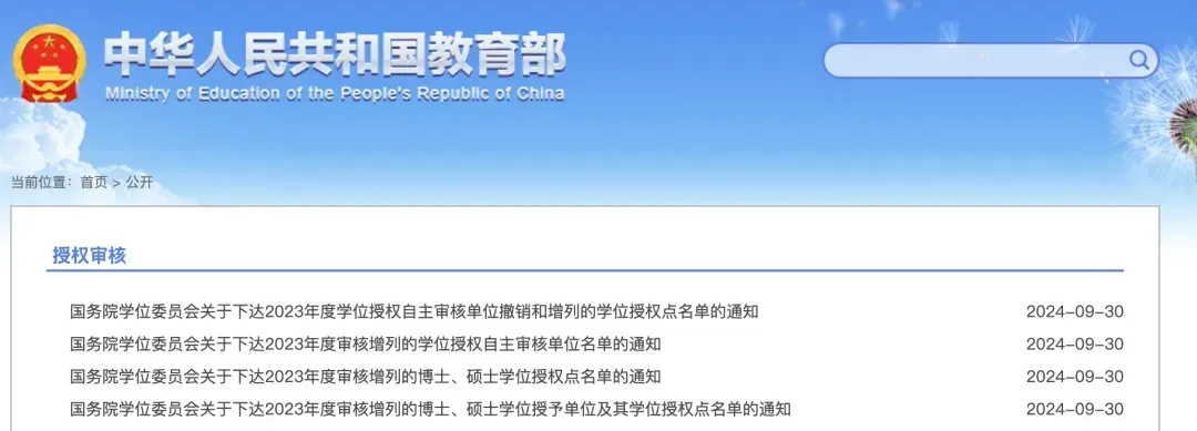 2023年度自主審核單位撤銷和增列的學位授權點名單公布