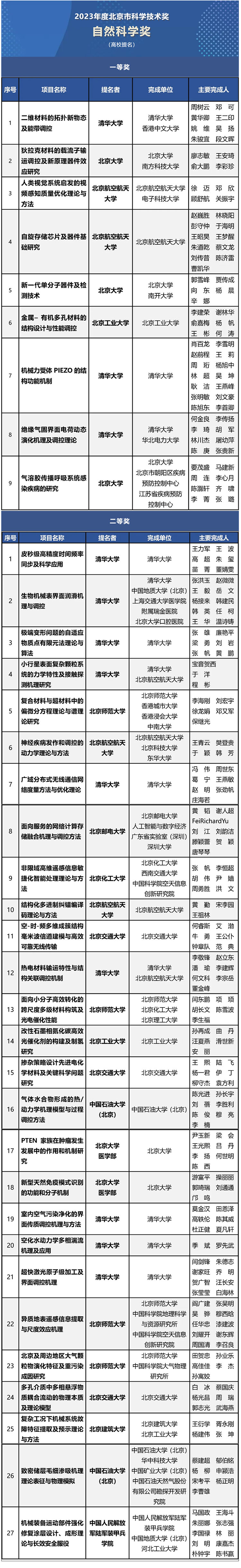 近日,2023年度北京市科學(xué)技術(shù)獎?wù)焦迹?9位科學(xué)家、196項成果獲獎。其中,北京部分高校提名的多個項目成果榮獲獎項,一起來看: