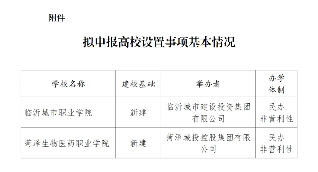 正在公示!山東擬新增兩所高等職業(yè)學校