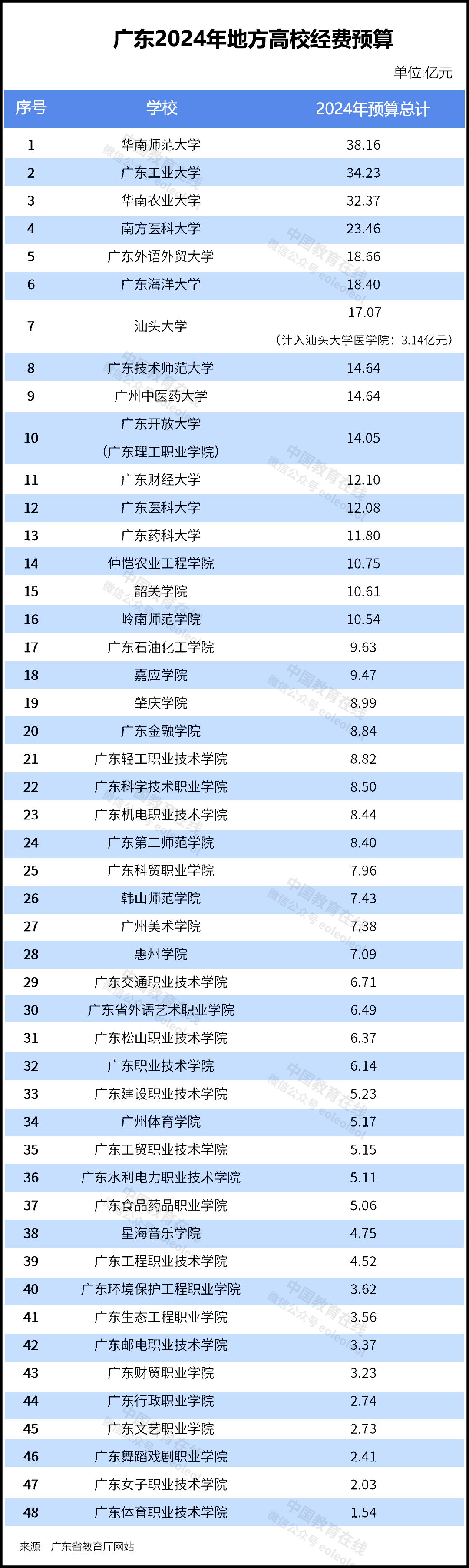 近日,廣東省教育廳網(wǎng)站公開2024年所屬單位預(yù)算信息。在48所省屬高校中,3所高校2024年預(yù)算超過30億元。