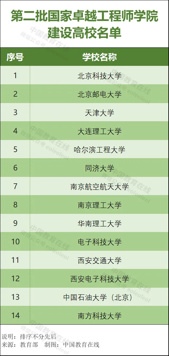 2023年9月13日,教育部發(fā)布《關于開展第二批國家卓越工程師學院建設工作的通知》,公布第二批國家卓越工程師學院,共涉及14所高校。
