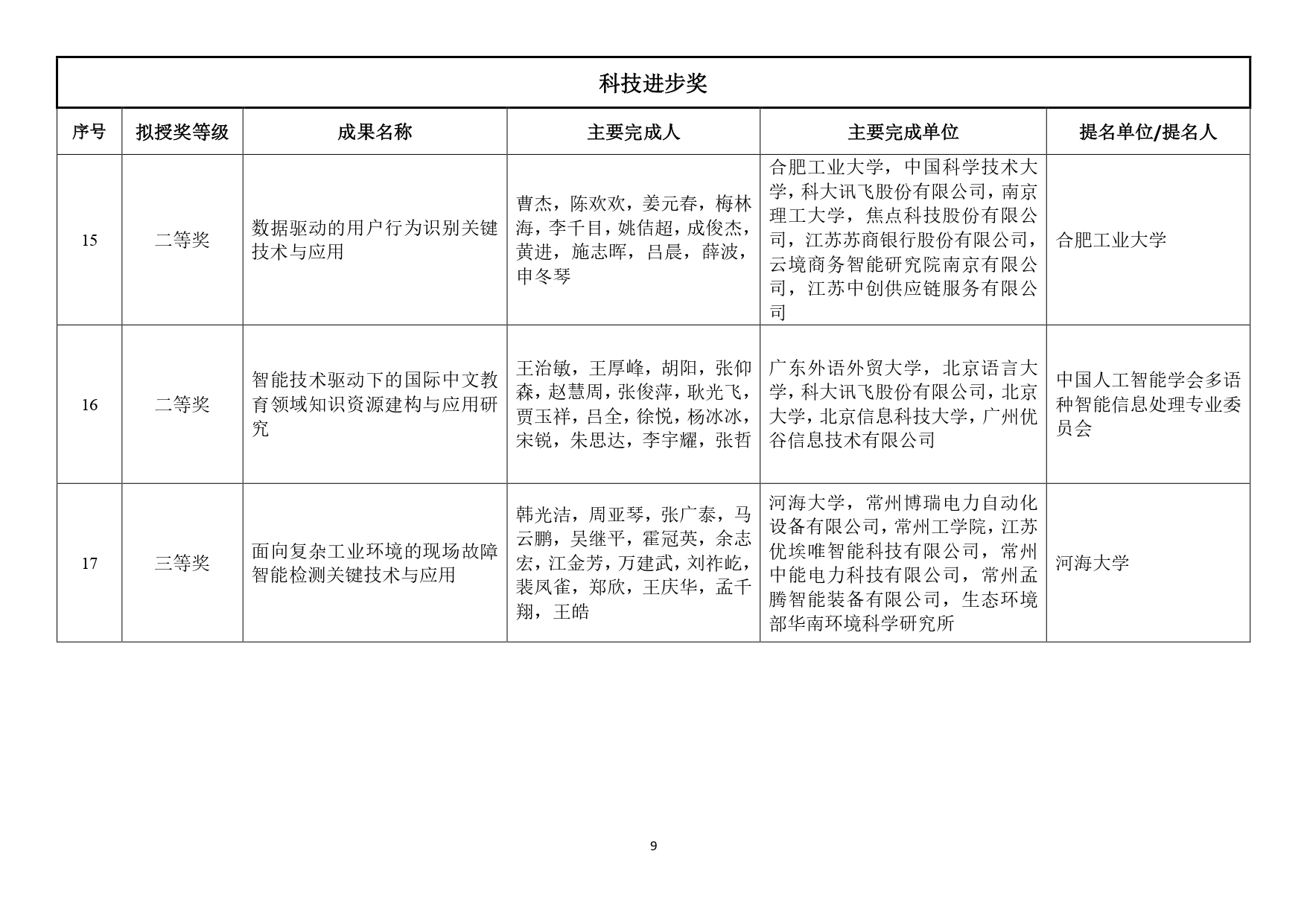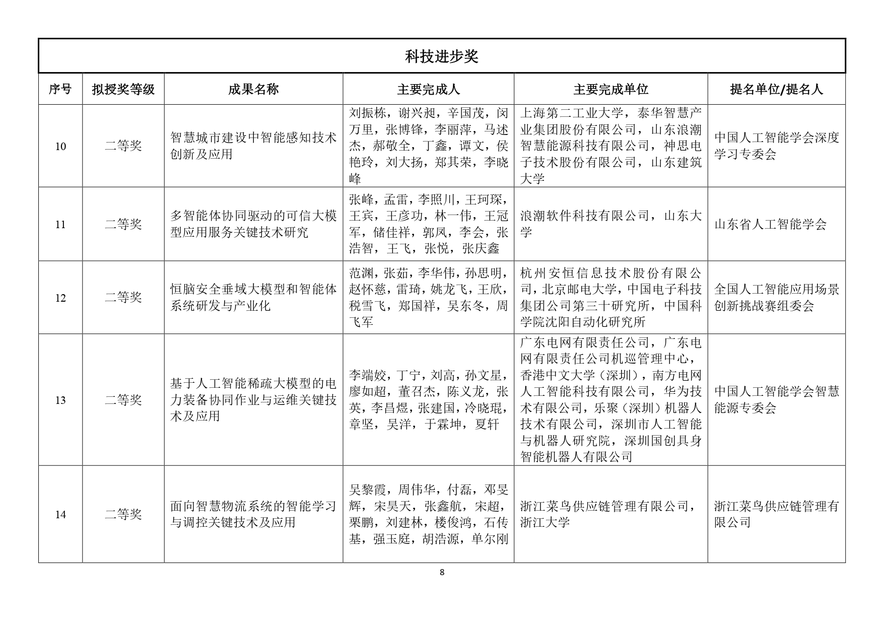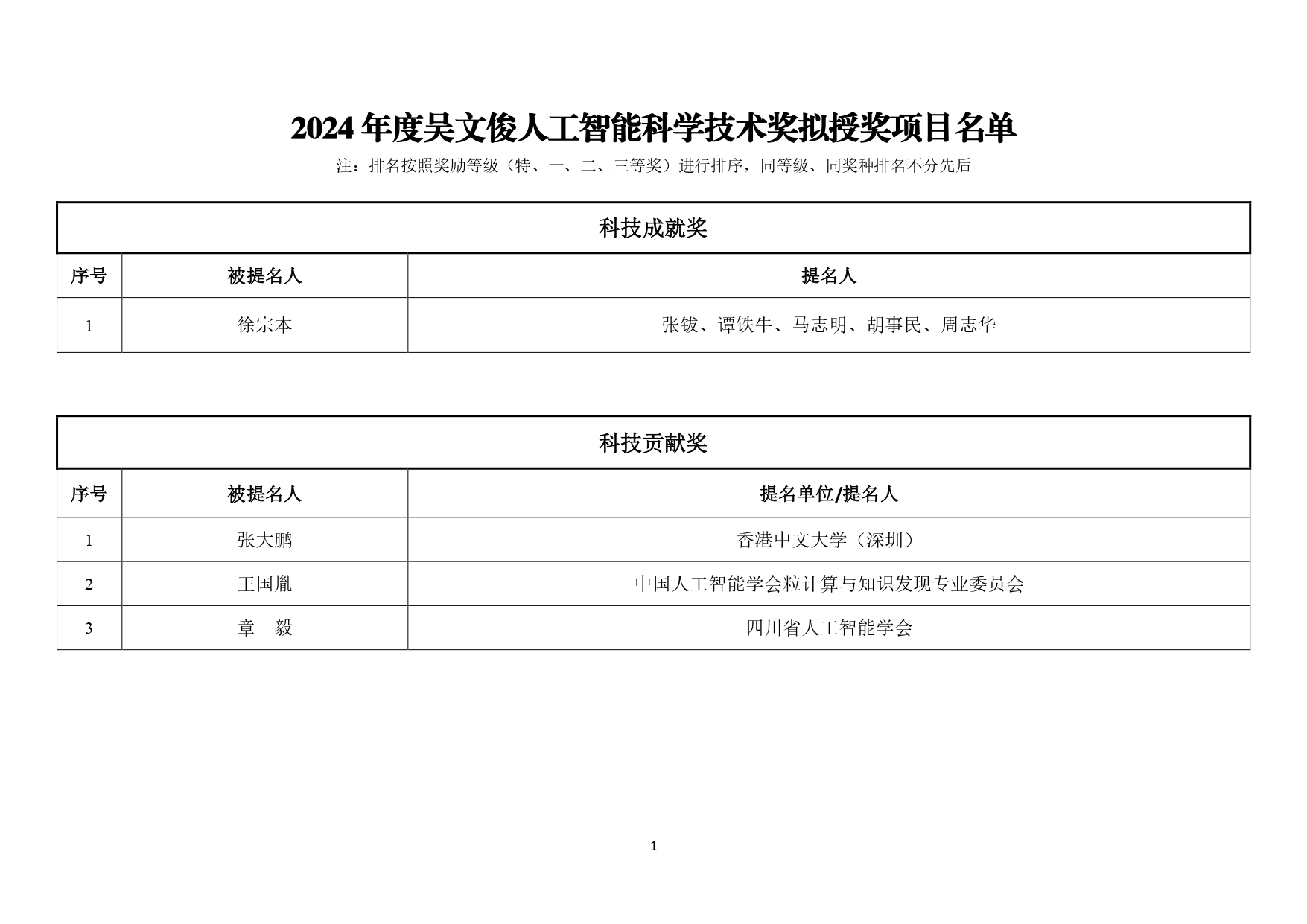 1月15日,中國(guó)人工智能學(xué)會(huì)公示2024年度吳文俊人工智能科學(xué)技術(shù)獎(jiǎng)擬授獎(jiǎng)項(xiàng)目名單。名單顯示,徐宗本院士獲科技成就獎(jiǎng)提名,張大鵬、王國(guó)胤、章毅獲科技貢獻(xiàn)獎(jiǎng)提名。此外,自然科學(xué)獎(jiǎng)9項(xiàng),技術(shù)發(fā)明獎(jiǎng)8項(xiàng),科技進(jìn)步獎(jiǎng)17項(xiàng),青年科技獎(jiǎng)15人。據(jù)統(tǒng)計(jì),共有21所高校作為第一完成單位入選。